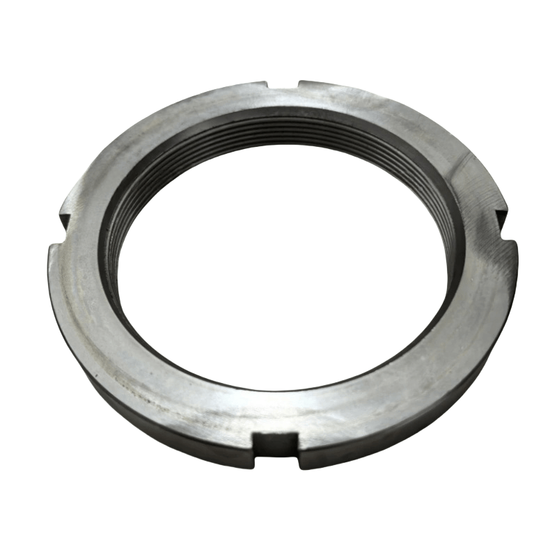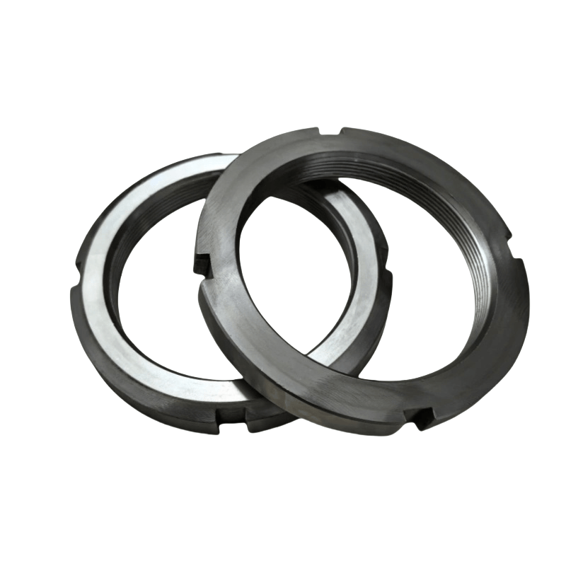 स्लोटेड लक नट (खोल्ने पिन): नटको साथ एक स्लट छ जुन बोल्ट प्वालसँग मिल्दछ, र लक गर्न एक उद्घाटन पिन घुसाइएको छ। विरोधी उछाल गर्ने प्रभाव भरपर्दो छ र प्राय: उच्च गति रोटेशन वा गम्भीर कम्पनहरूको साथ कम्पोनेन्टहरूको लागि प्रयोग गरिन्छ (जस्तै क्र्याक्स्चटेक अन्त)।