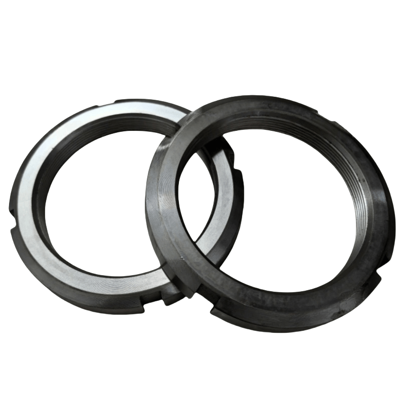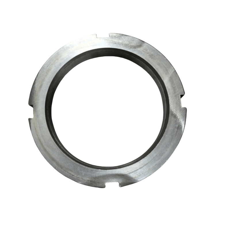 स्लोटेड लक नट (खोल्ने पिन): नटको साथ एक स्लट छ जुन बोल्ट प्वालसँग मिल्दछ, र लक गर्न एक उद्घाटन पिन घुसाइएको छ। विरोधी उछाल गर्ने प्रभाव भरपर्दो छ र प्राय: उच्च गति रोटेशन वा गम्भीर कम्पनहरूको साथ कम्पोनेन्टहरूको लागि प्रयोग गरिन्छ (जस्तै क्र्याक्स्चटेक अन्त)।